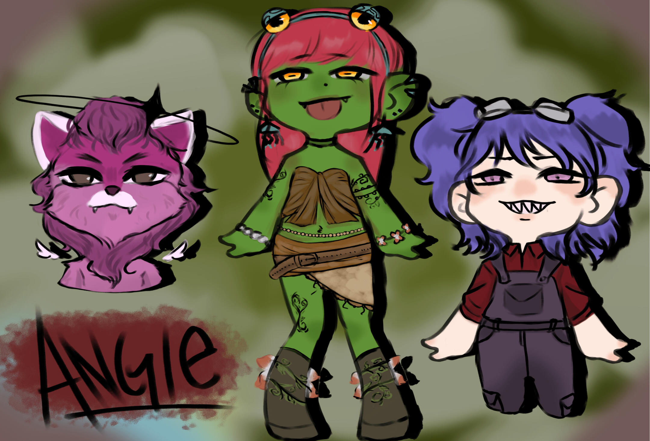 » I’m Angie, an illustrator who’s slowly making my way into the world of digital art.» 21 years old.» He/Him | She/Her» I’ve been drawing for as long as I can remember; I live for art. If I could, I’d do anything related to art, dance, literature, theater, sculpture, sewing, and so on. Lately, I’ve been listening to more nu-metal, post-punk, and K-pop.» <3 music, musicals, animations, books, movies, TV shows, RPGs, history, comics, and drawing <3